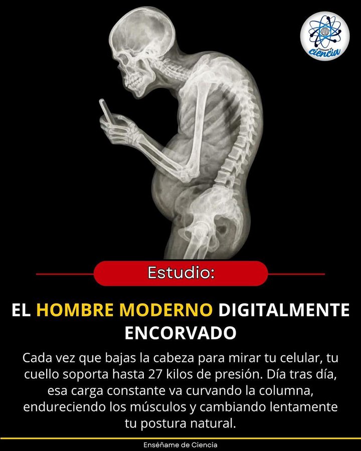 Día tras día, esa tensión constante va forzando la columna, endureciendo los músculos y cambiando lentamente tu postura natural. No lo notas… pero tu cuerpo sí. El “hombre moderno” está evolucionando, no por genética… sino por mala postura digital.
