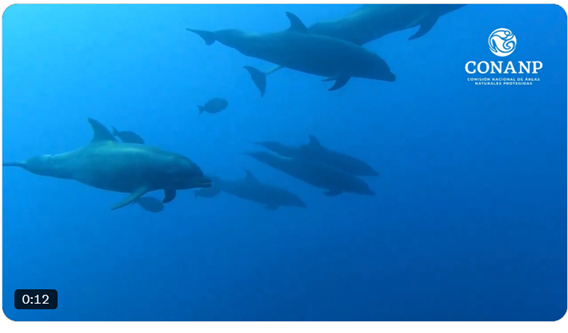 Vive en grupos de 10 a 12 individuos. Cada delfín tiene su propio silbido con el que se identifica frente a los demás. Ver video