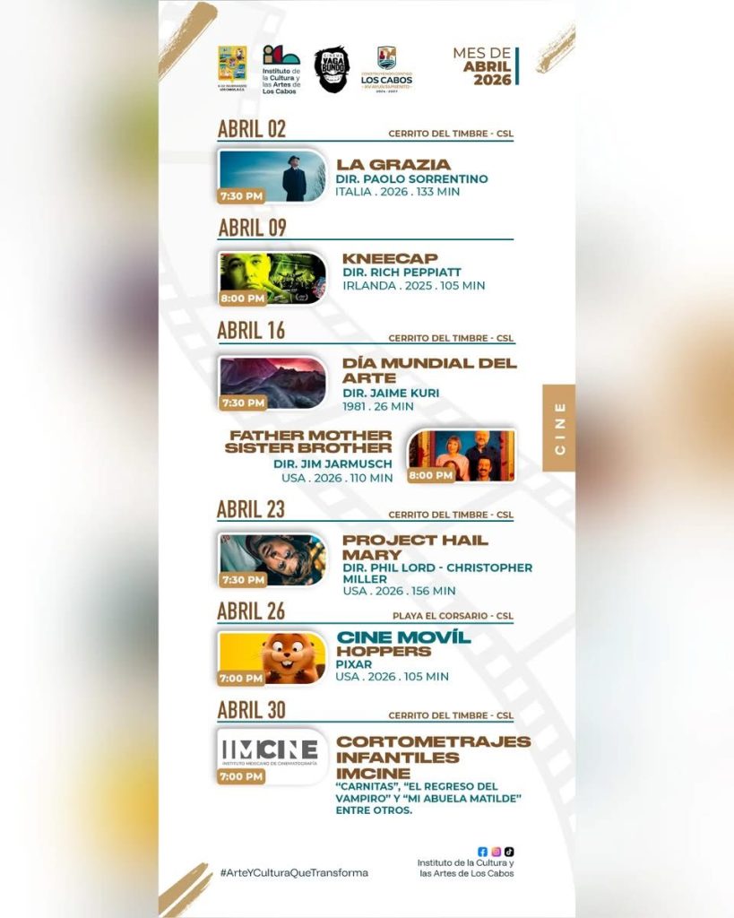 Abril viene con agenda movida en Los Cabos. El calendario del Fideicomiso de Turismo incluye actividades como ¡Viva la Plaza! en la Plaza Amelia Wilkes y eventos de temporada, además de propuestas gastronómicas hacia fin de mes como el Festival of Flavors (30 de abril al 2 de mayo). En San José del Cabo, el Art Walk es el plan clásico: galerías, música y paseo por el Distrito del Arte (se realiza los jueves, de noviembre a junio). Y para quienes aman el motor, la carrera Dos Mares 500 está calendarizada para 1, 2 y 3 de mayo, así que muchos equipos ya se mueven desde finales de abril.
