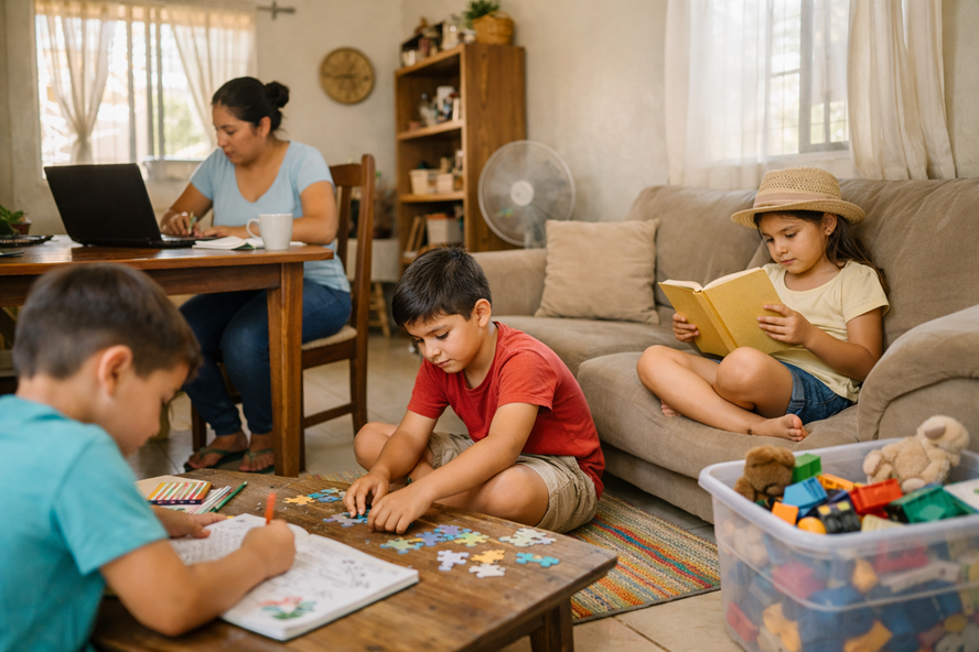 También sirve dejar preparada una “caja de vacaciones” con materiales baratos: hojas recicladas, colores, plastilina, cuentos, rompecabezas, pelotas, cuerda para saltar o juegos de mesa sencillos. Cuando el dinero no alcanza para cursos o salidas, la creatividad en casa sigue siendo una gran aliada. Incluso actividades básicas como ordenar juguetes, regar plantas, ayudar a doblar ropa o preparar una merienda sencilla pueden mantenerlos ocupados y, al mismo tiempo, enseñar responsabilidad.