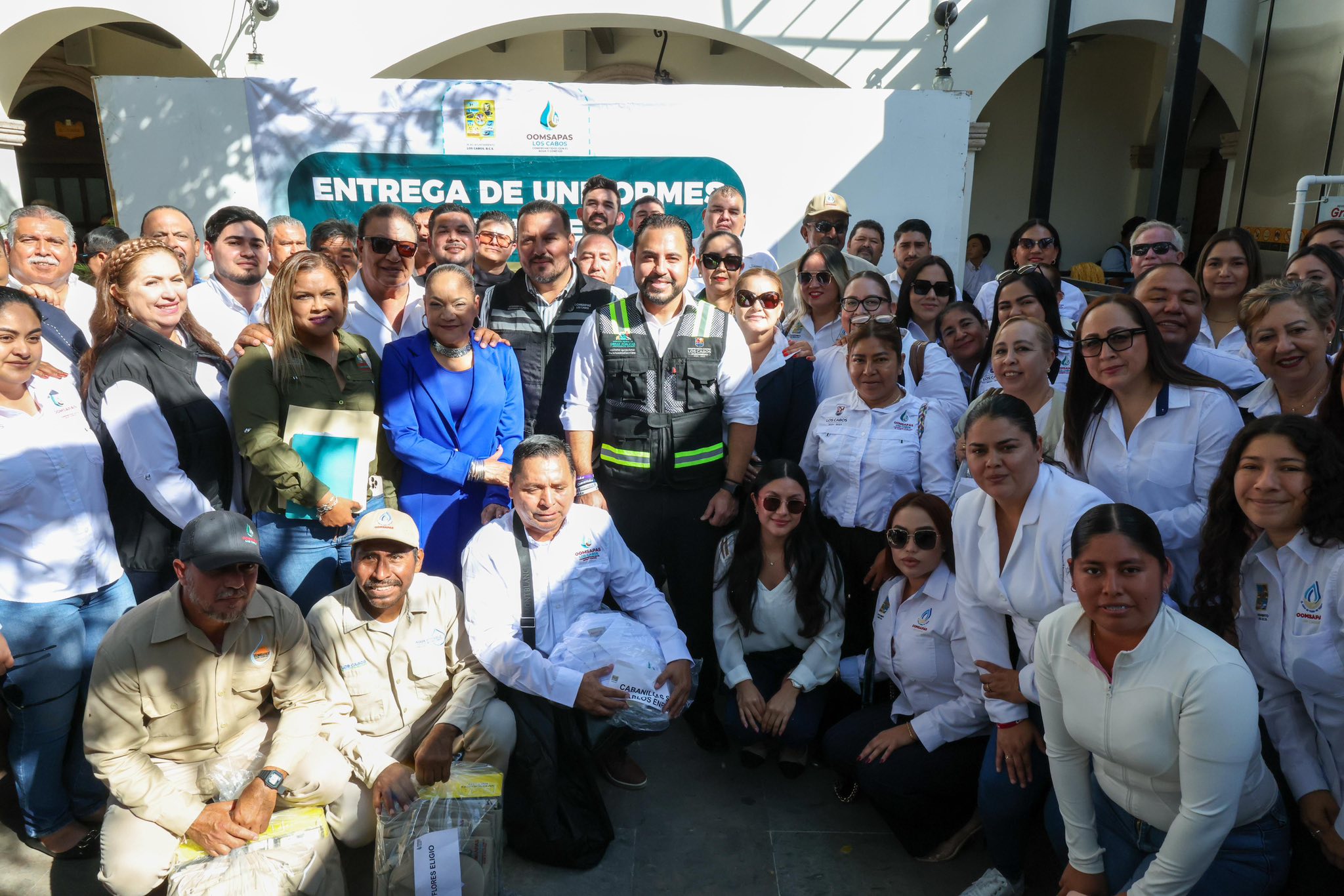 En el Palacio Municipal se realizó la entrega de uniformes al personal de OOMSAPAS Los Cabos, como parte de las acciones orientadas a fortalecer las condiciones laborales y el desempeño de sus funciones.